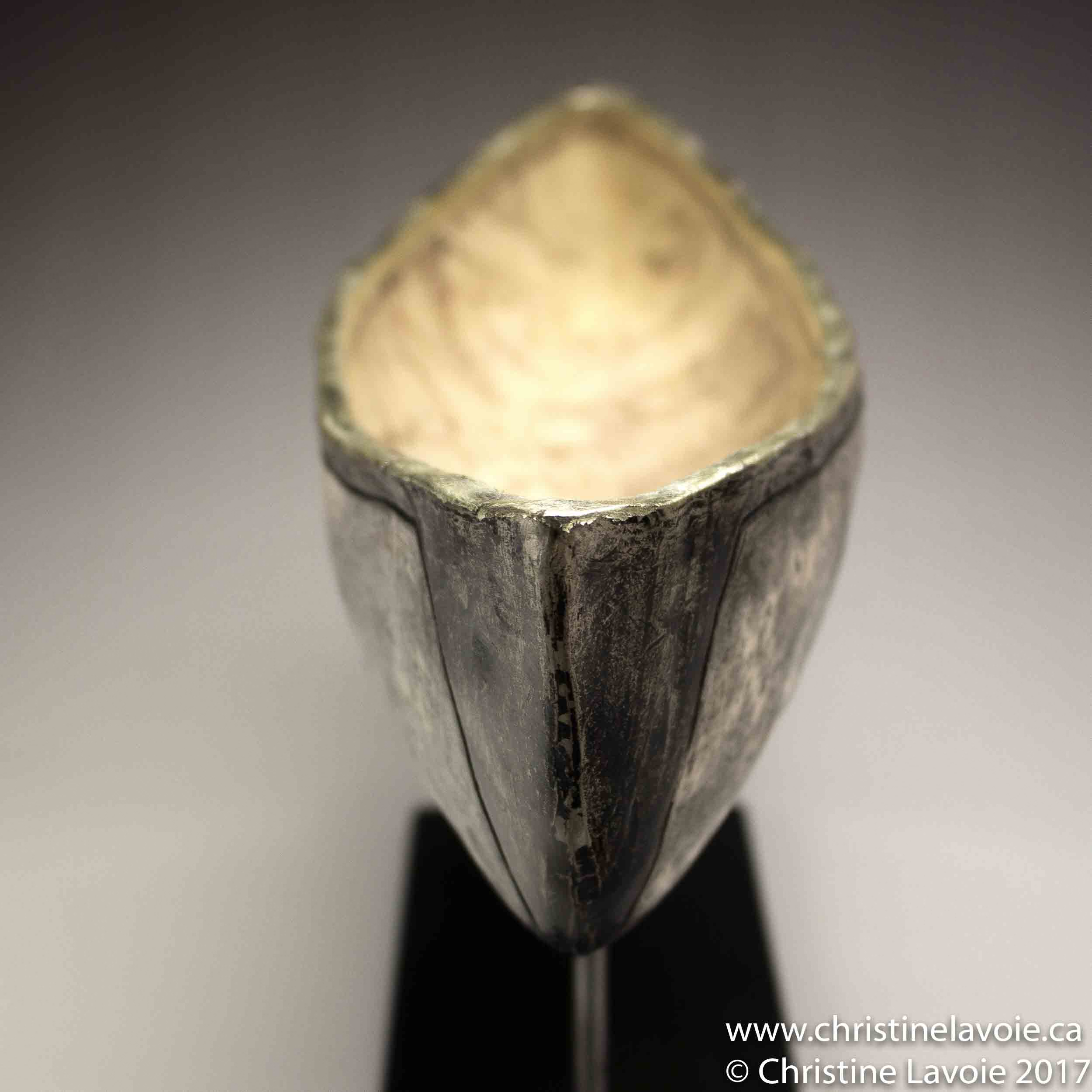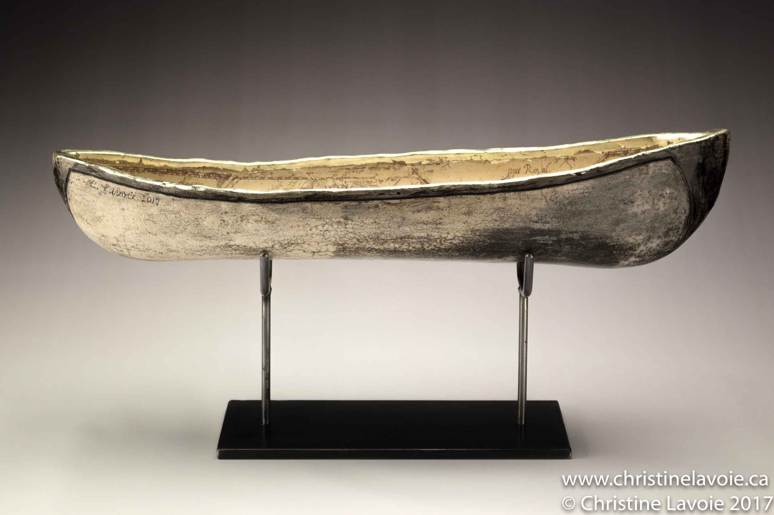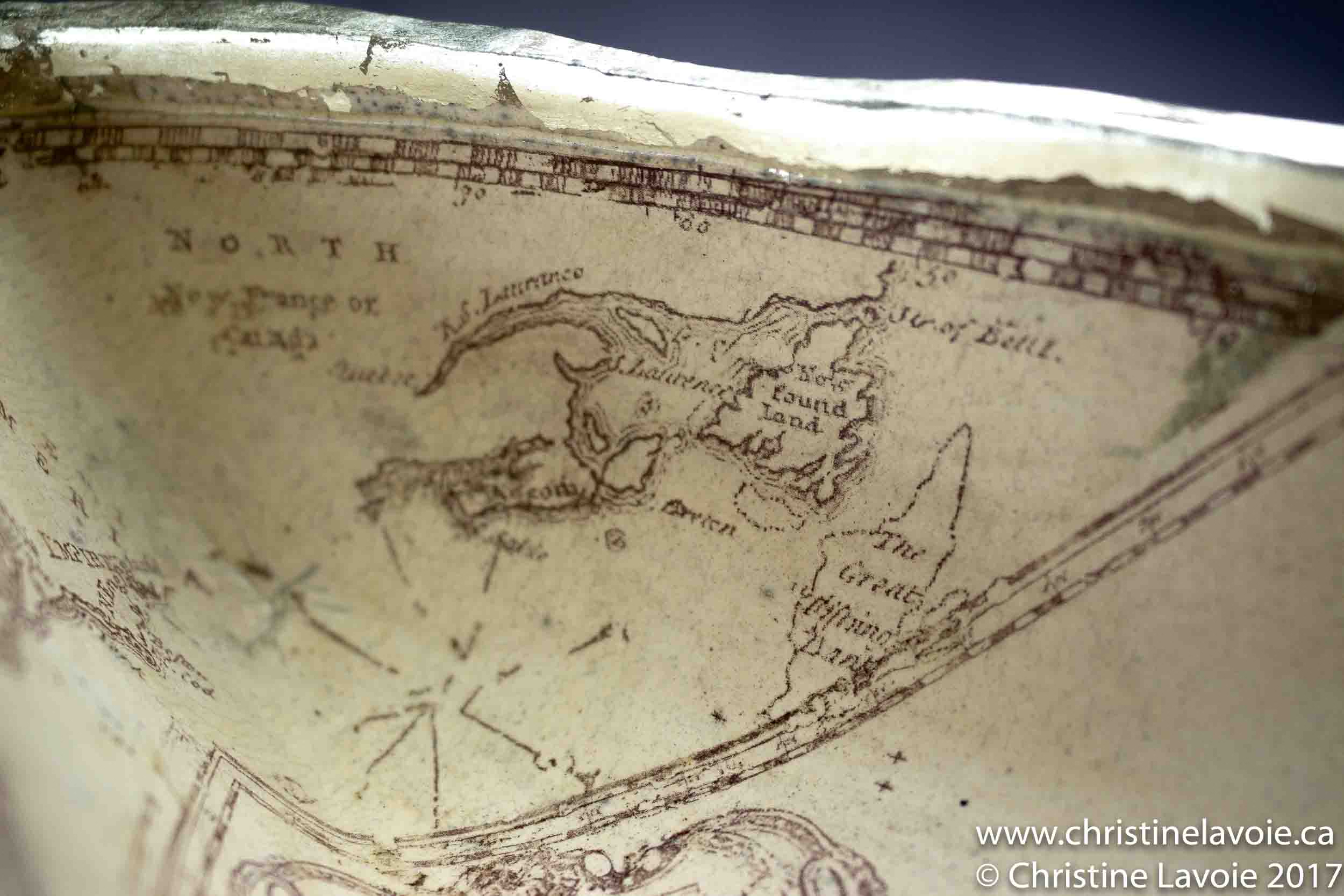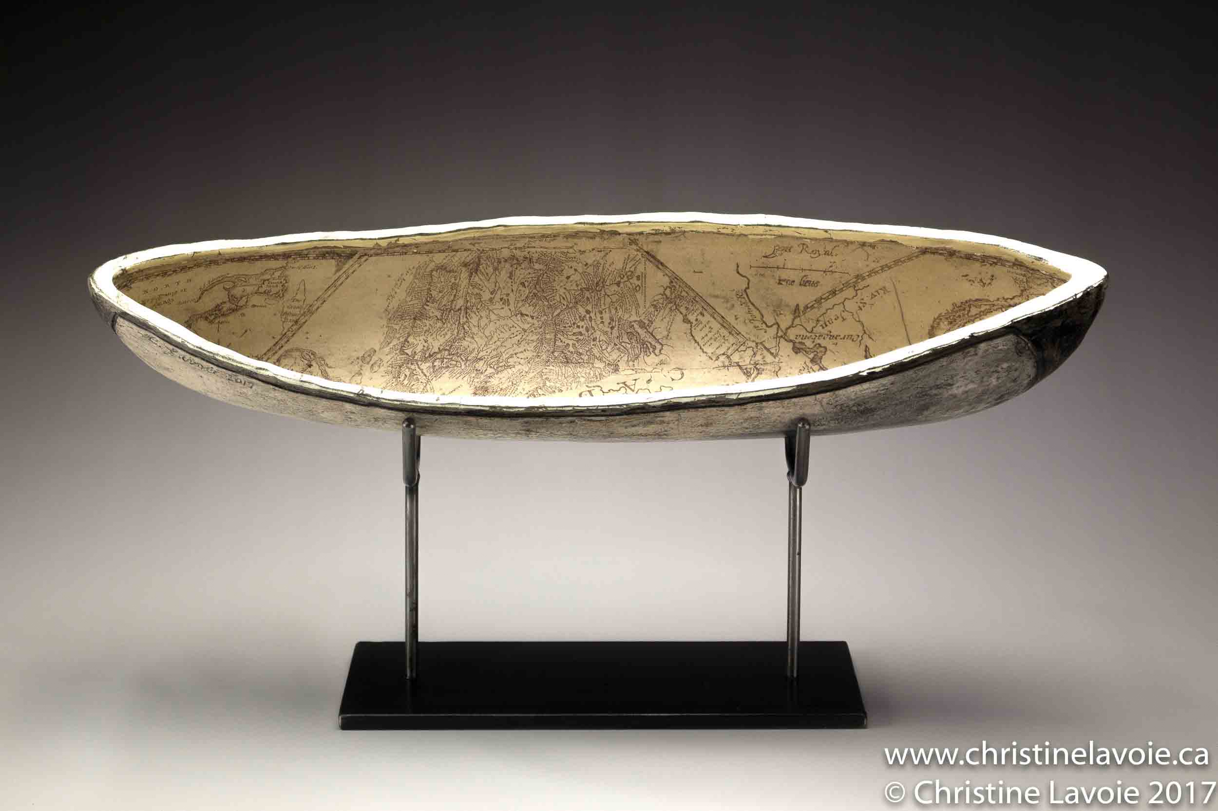 Dimensions 58cm Techniques naked raku ceramic, maps from the NS Archives, 12K white gold Date 2017 << >>